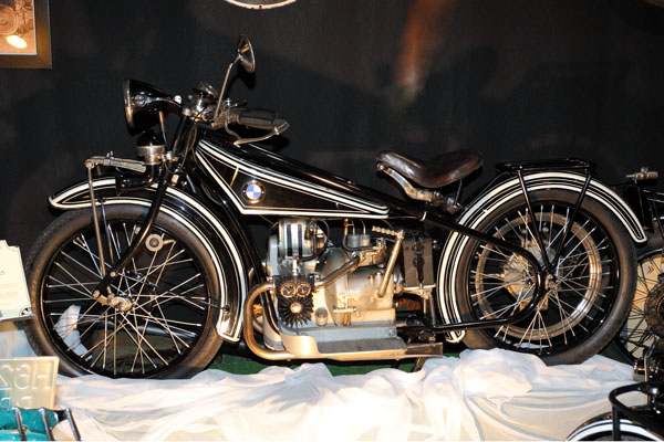 BMW :R32de 1924 La R32 est lancée au salon de Paris 1923.Le moteur de 494 cm3 est tourné de 90° pour un bon refroidissement des deux cylindres. Boîte de vitesses à trois rapports. Transmission par un arbre à la roue arrière Cette configuration a depuis toujours été utilisée par BMW sur ses séries "R". |